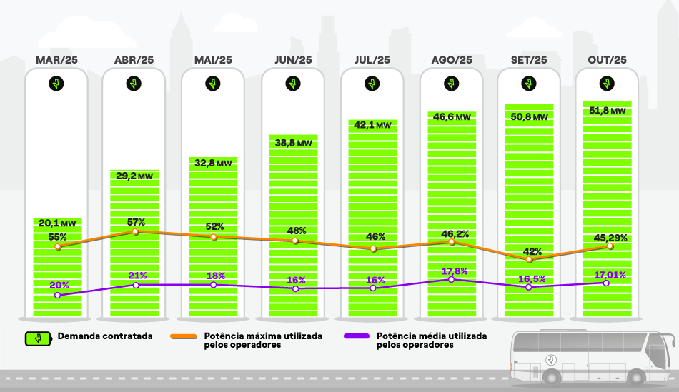 - Até o fim de 2025, a companhia vai atender mais 16 garagens, alcançando no total cerca de 96,3 MW. Essa energia será suficiente para abastecer 2.140 ônibus elétricos.