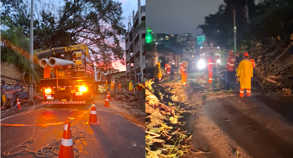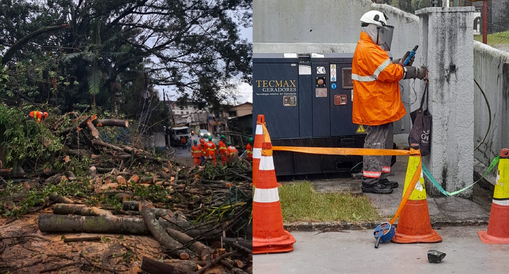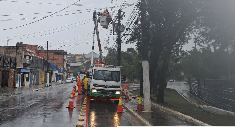 11h: Frentes de trabalho concentradas em ocorrências complexas, com quedas de árvores sobre linhas de alta tensão. Na Zona Norte, técnicos atuam junto ao Corpo de Bombeiros na remoção de uma árvore de grande porte sobre a linha que abastece a subestação Gato Preto, que atende Jaraguá, Anhanguera e Perus.