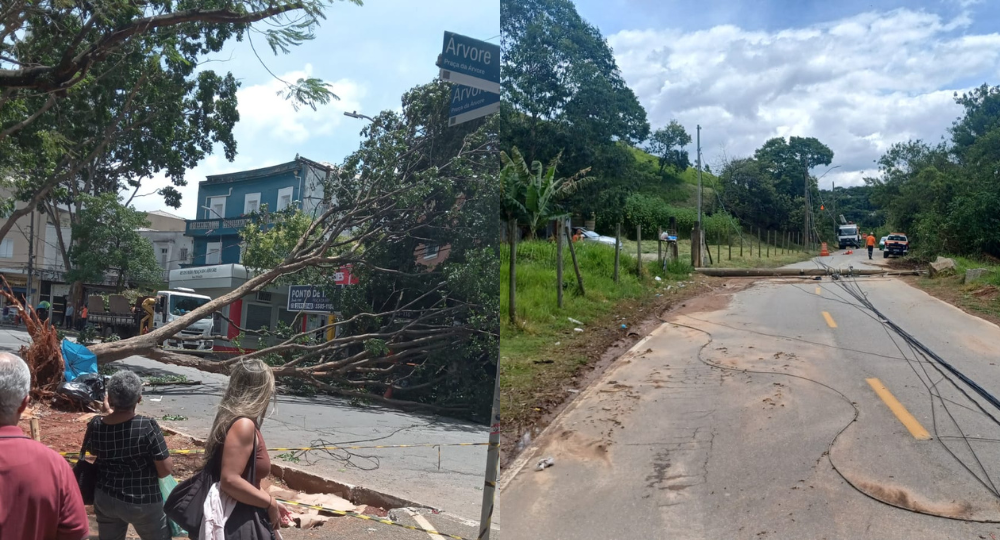 Por causa dos ventos, em alguns pontos a rede elétrica é atingida por objetos e galhos, o que prejudica o fornecimento, além da queda de árvores.